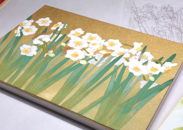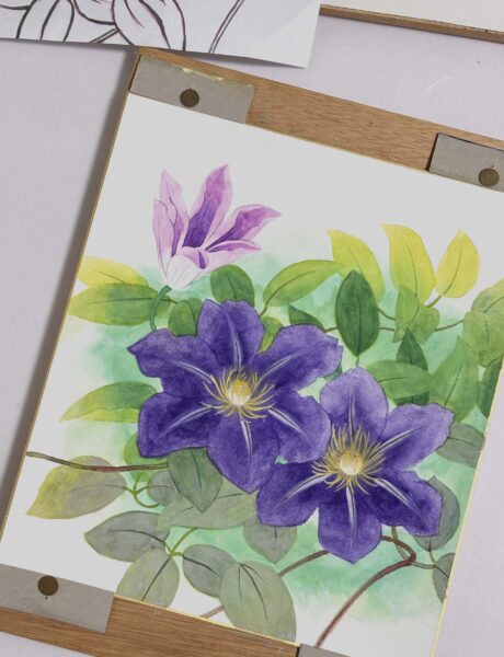クレマチスの色紙がだいたい出来上がって、あとは微調整。
