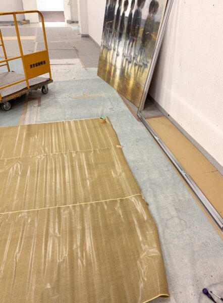 写真は都美館の地下で、ちょっと場所を借りて梱包するところです。