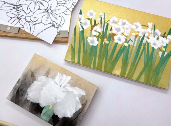 左上は日本画教室用の、次の作例にとりかかっています。