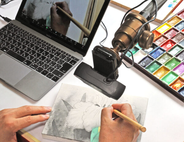 知人からオンラインで日本画を指導してほしいと依頼があり、1回目を終えました。